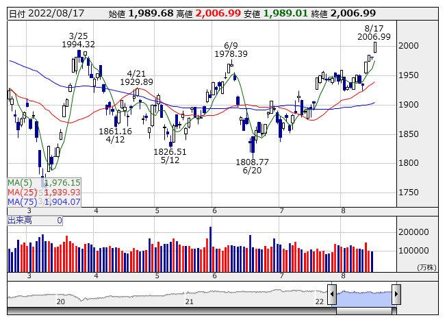 1989.60ポイント 5日移動平均