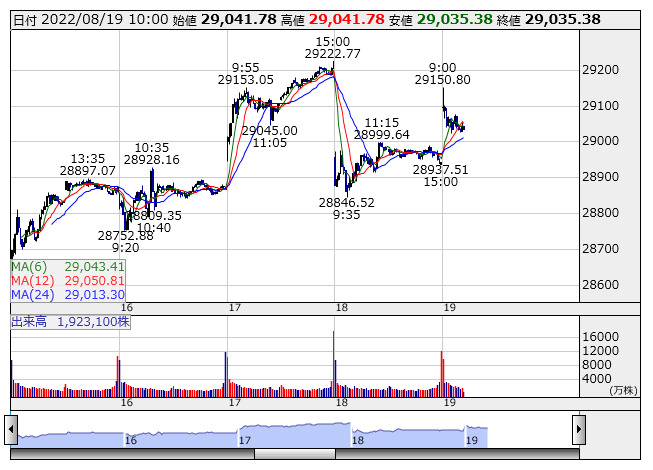 【市況】10時の日経平均は102円高の2万9044円、東エレクが25.65円押し上げ