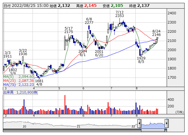 【特集】5日と25日線【ゴールデンクロス】低PER 26社選出 <テクニカル特集> 8月25日版