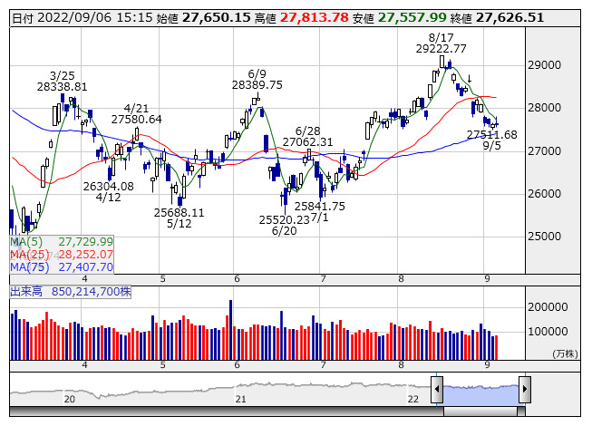 大引け 27626.51(前日比 +6.90 、 +0.02% )