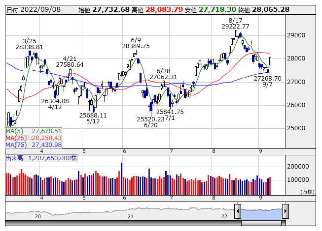 日経225先物 27650 -160 8521