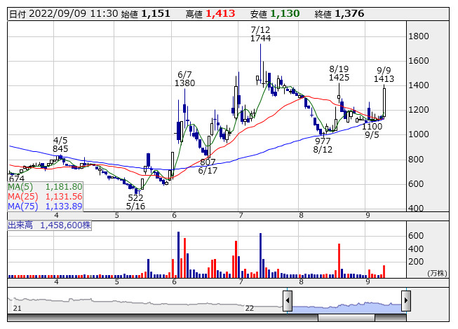 【材料】前場のランキング【寄付からの値上がり率】 (9月9日)