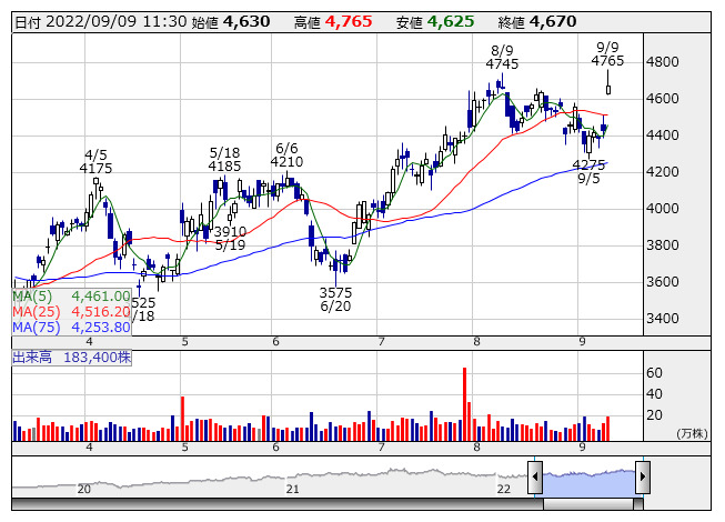 ISID <日足> 「株探」多機能チャートよりISID<4812>:4670円(+240円)