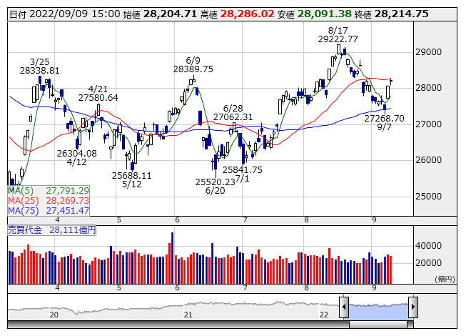 日経平均 <日足> 売買代金 「株探」多機能チャートより個別ではNEXT インド株式 <1678> 、NEXT インドブル <2046> 、One ETF 高配当日本株 <1494> 、グローバルX 日経225カバード・コール <2858> 、NEXT 野村日本株高配当 <1577> など6銘柄が新高値。iシェアーズ 気候リスク調整世界国債 <2853> 、iシェアーズ ドイツ国債 ETF(為替ヘッジあり) <2857> が新安値をつけた。