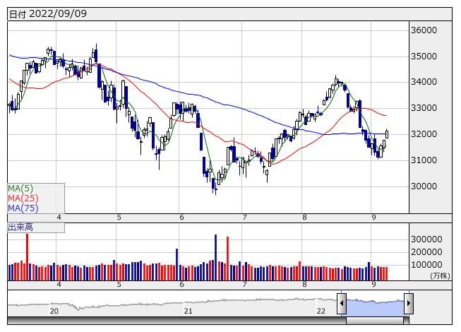 先週の日経225先物は週半ば以降、リバウンドに転じた。8月26日のジャクソンホール会議でのパウエル米連邦準備理事会(FRB)議長の発言以降、FRB高官によるタカ派姿勢を支持する発言が相次いだほか、8月の米ISM非製造業景況指数が2カ月連続で改善するなど予想を上回る経済指標の発表があった。これを受けて米長期金利が6月以来の高水準となるなか、今月のFOMCでの積極的な金融引き締めが警戒されて、日経225先物は7日に一時2万7030円(ナイトセッションを含む)まで売られた。テクニカルでは75日線を割り込み、ボリンジャーバンドの-2σまでの調整となったが、その後の強いリバウンドによって週末には2万8000円を回復した。