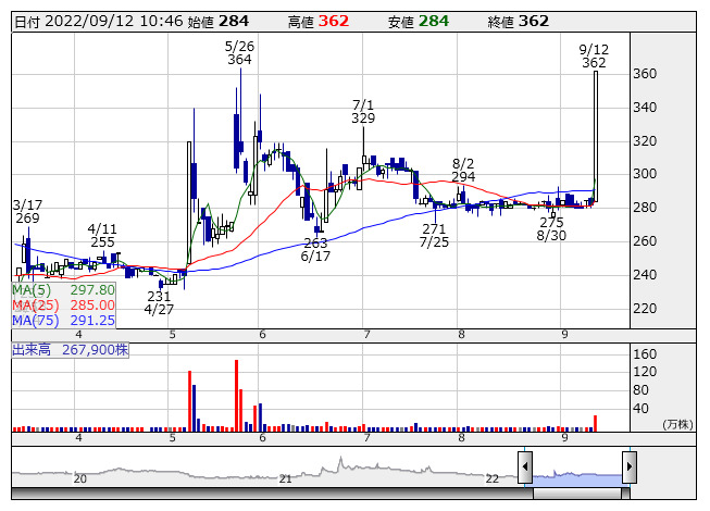 【材料】前場のランキング【寄付からの値上がり率】 (9月12日)