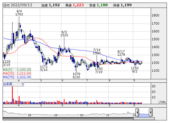 12日に決算を発表。「5-7月期(1Q)経常は51%減益で着地」が嫌気された。