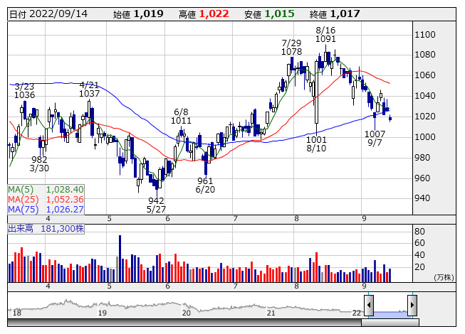 山王 <3441> 1,014 -123 (-10.8%) 7,200 ( 730) 7,900 ( 800)