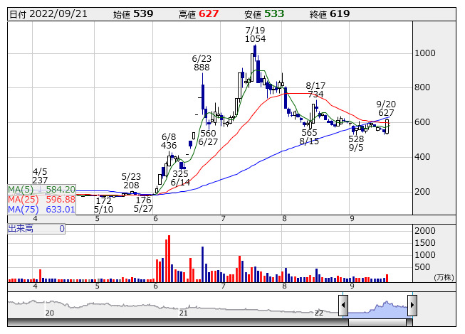 CANBAS <日足> 「株探」多機能チャートより9月21日9時03分16秒現在、特別買い気配は18銘柄、特別売り気配は9銘柄となっている。
