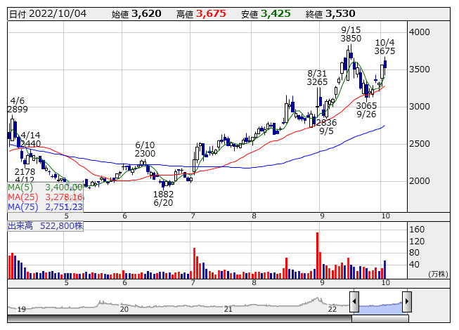 ミスミG <9962> 4,015 +690 (+20.8%) 20,700 ( 8,321) 20,500 ( 8,230)
