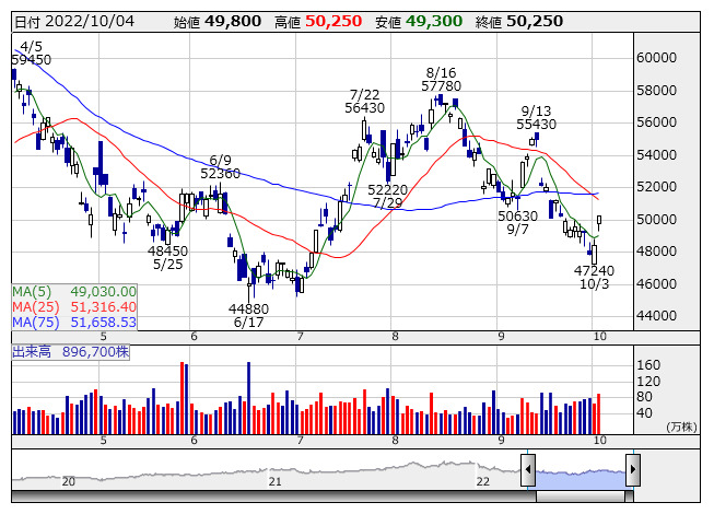 キーエンス <6861> 52,180 +1,930 ( +3.8%) 48,800 (254,687) 48,600 (253,594)