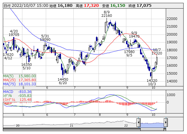 <6920> レーザーテック 17075 +615 ( +3.7%) -810.4