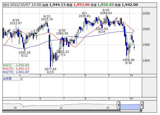 2022年10月07日15時18分 【市況】東証REIT指数先物:7日清算値=17ポイント安、1928ポイント REIT指数 <日足> 「株探」多機能チャートより 7日15時15分、東証REIT指数先物期近2022年12月限は前日清算値比17ポイント安の1928ポイントで取引を終えた。出来高は313枚だった。この日の東証REIT指数の現物終値1942ポイントに対しては14ポイント安。 株探ニュース
