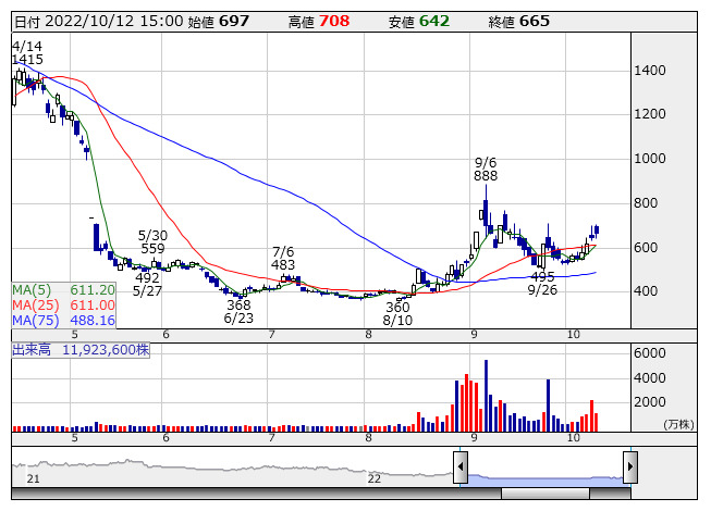 <4165> プレイド 665 +17 ( +2.6%) 611.2 611.0