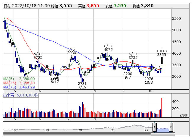 【材料】前場のランキング【値上がり率】 (10月18日)