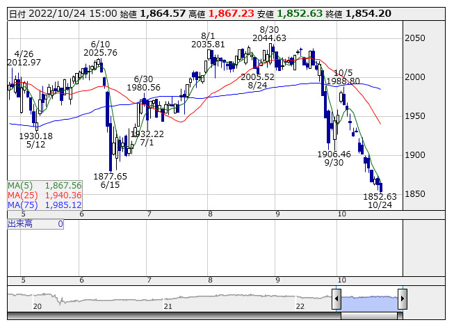 2022年10月24日15時18分 【市況】東証REIT指数先物:24日清算値=3ポイント安、1845ポイント REIT指数 <日足> 「株探」多機能チャートより 24日15時15分、東証REIT指数先物期近2022年12月限は前週末清算値比3ポイント安の1845ポイントで取引を終えた。出来高は605枚だった。この日の東証REIT指数の現物終値1854.2ポイントに対しては9.2ポイント安。 株探ニュース