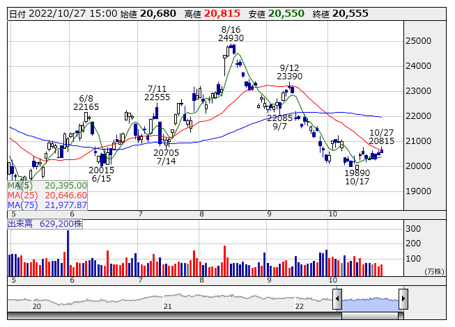 ファナック <日足> 「株探」多機能チャートより22年10月~23年3月の業績予想の前提となる為替レートは平均で1ドル=130円、1ユーロ=130円と、いずれも実勢より円高方向で設定した。