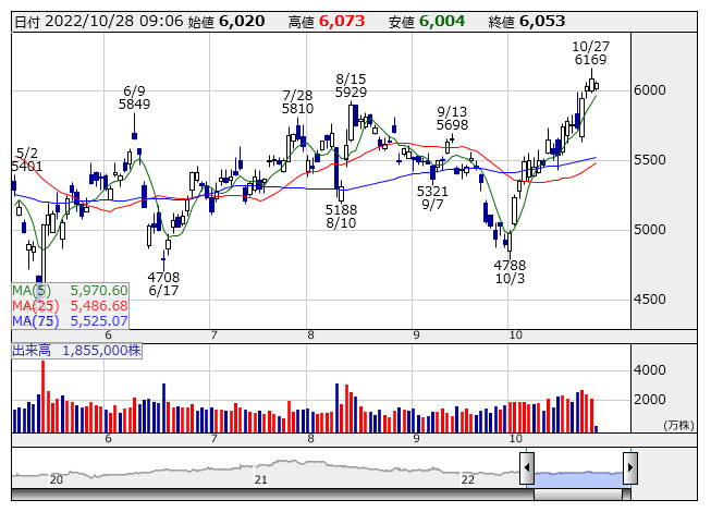 1. <9984> SBG 東証P 2,875 6053 ( -0.6 ) 日経225・JPX日経400採用