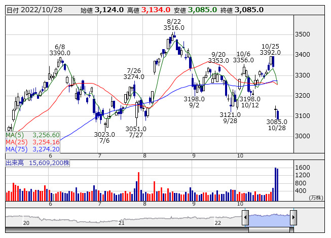 <2737> トーメンデバ 東P -4.97 10/27 上期 -31.02
