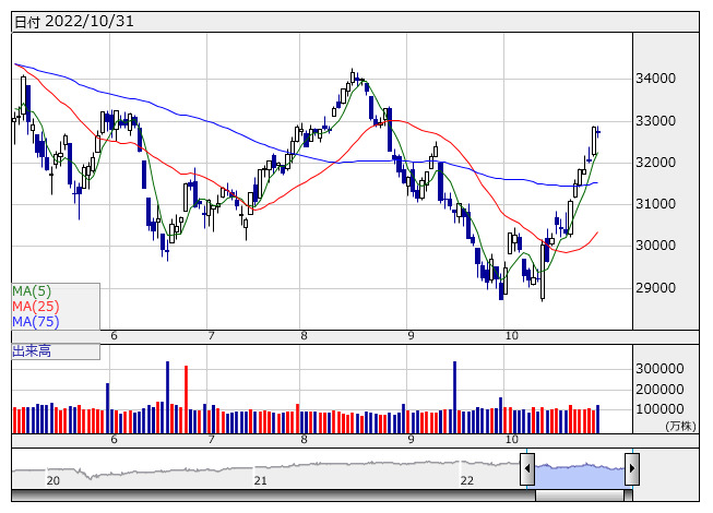 NYダウ <日足> 「株探」多機能チャートより11月1日前場の取引では以下の3つのポイントに注目したい。