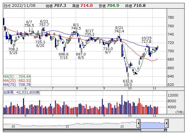 <8306> 三菱UFJ 35324 ( 497) 710 -0.8 ( -0.1%)