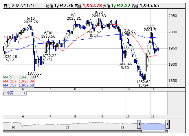 2022年11月11日08時52分 【市況】東証REIT指数先物:11日寄り付き=33ポイント高、1976ポイント REIT指数 <日足> 「株探」多機能チャートより 11日8時51分、東証REIT指数先物期近2022年12月限は前日清算値比33ポイント高の1976ポイントで寄り付いた。前日の東証REIT指数の現物終値1945.65ポイントに対しては30.35ポイント高。 株探ニュース