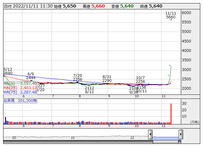 【材料】前場のランキング【値上がり率】 (11月11日)