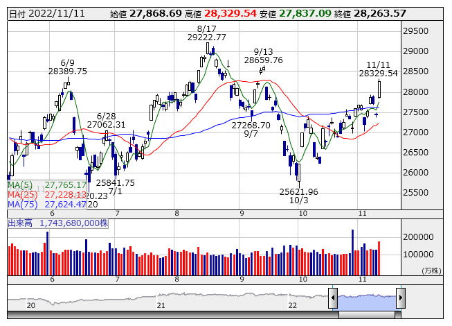 ・日経平均は上昇(28263.57、+817.47)