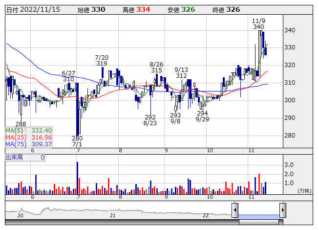 【材料】前場のランキング【値上がり率】 (11月15日)