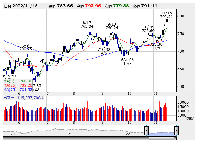 778.20ポイント 5日移動平均