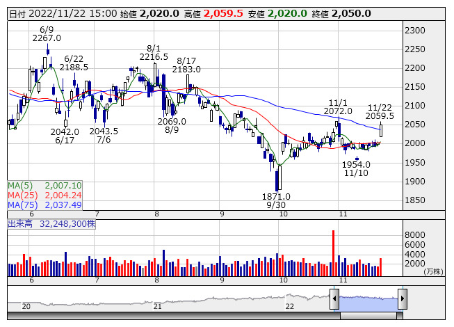 <6914> オプテックスグループ 2166 +89 ( +4.3%) 2039.4 2009.8