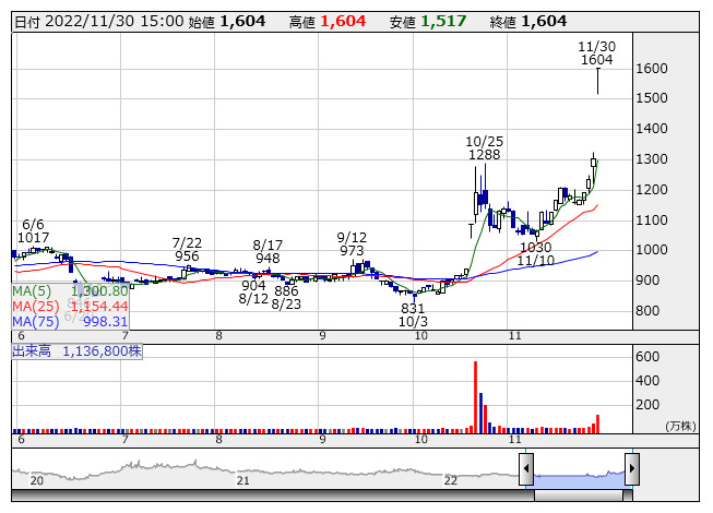 一方、ベイシス<4068>、i-plug<4177>、Sharing Innovations<4178>、エアークローゼット<9557>が年初来安値を更新。ココナラ<4176>、グローバルセキュリティエキスパート<4417>、pluszero<5132>、ティムス<4891>、キャンバス<4575>は値下がり率上位に売られた。