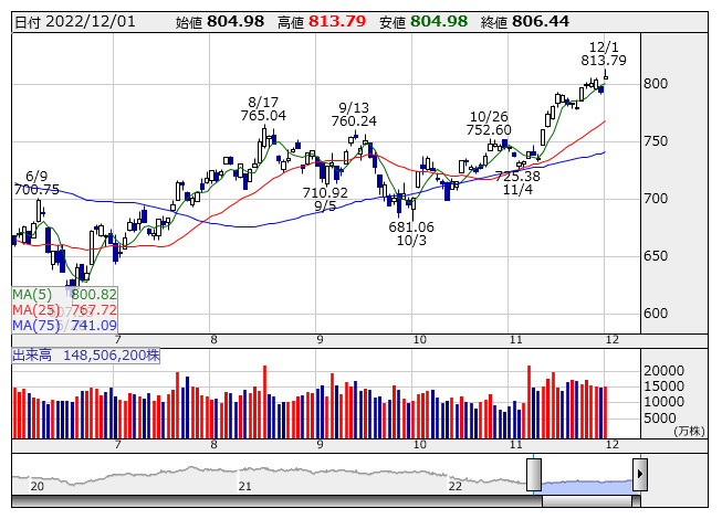 715.50ポイント 一目均衡表・先行スパン1(雲下限)