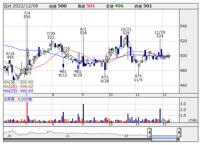 大興電子 <8023> 488 +6 ( +1.2%) 1,500 ( 73) 1,400 ( 68)