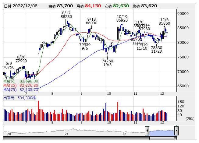 ファストリ <日足> 「株探」多機能チャートより(東証上場 4156 銘柄対象[ETF、REIT含む])