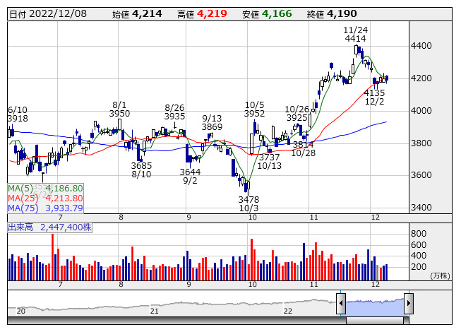 伊藤忠 <日足> 「株探」多機能チャートより(東証プライム上場 1826 銘柄対象)