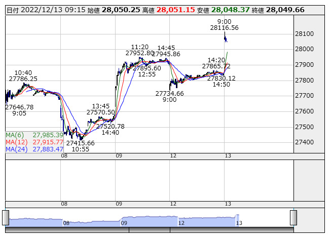 日経平均 <5分足> 売買代金 「株探」多機能チャートより個別ではグローバルX 日経225カバード・コール <2858> が新高値。