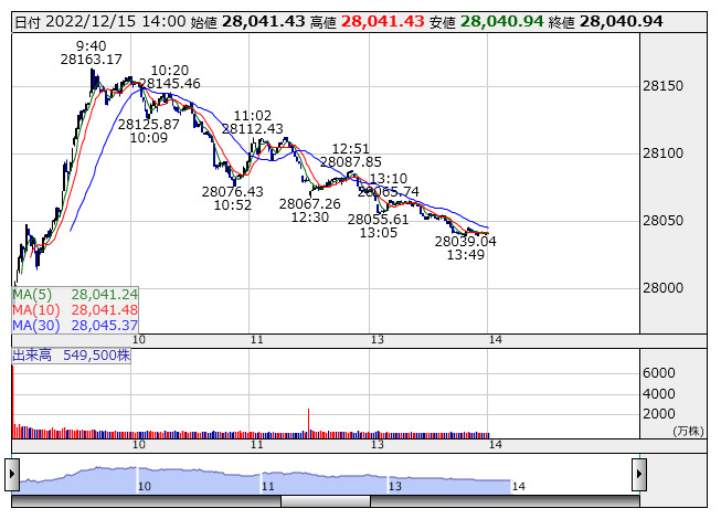 【市況】14時の日経平均は114円安の2万8041円、ファストリが14.72円押し下げ