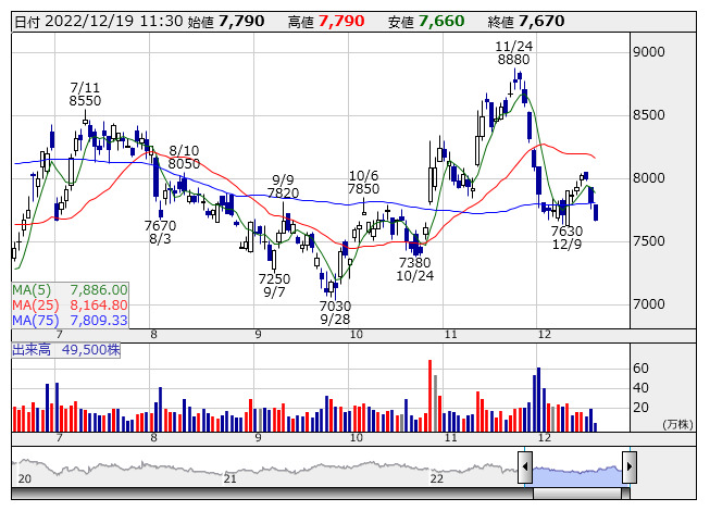 日本新薬 <日足> 「株探」多機能チャートより■財務省 : 12月19日受付