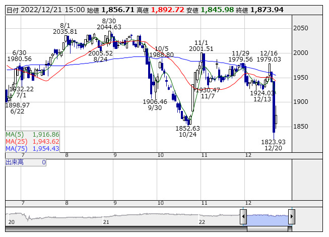 2022年12月21日15時17分 【市況】東証REIT指数先物:21日清算値=23ポイント高、1850ポイント REIT指数 <日足> 「株探」多機能チャートより 21日15時15分、東証REIT指数先物期近2023年3月限は前日清算値比23ポイント高の1850ポイントで取引を終えた。出来高は721枚だった。この日の東証REIT指数の現物終値1873.94ポイントに対しては23.94ポイント安。 株探ニュース