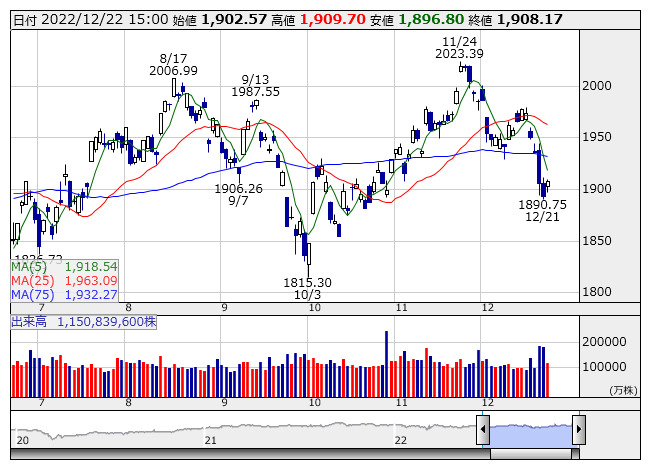 【市況】TOPIX先物テクニカルポイント(22日大引け)