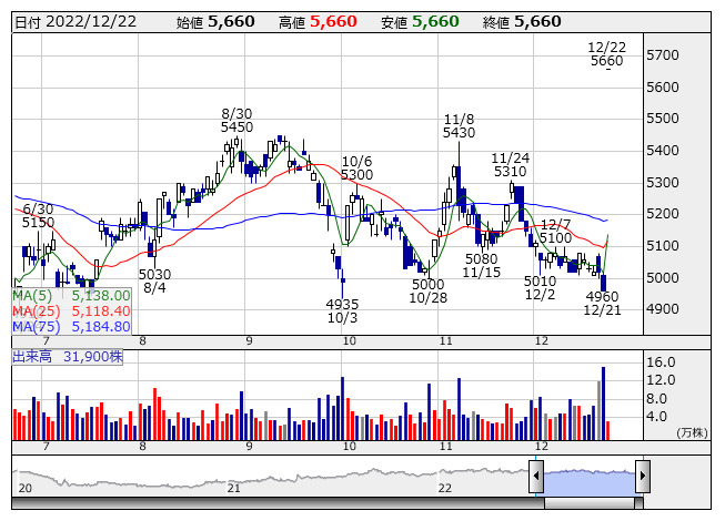 日鉄物産 <日足> 「株探」多機能チャートより(東証上場 4170 銘柄対象[ETF、REIT含む])