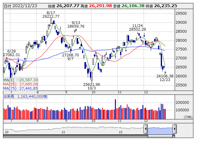 【市況】日経225先物:24日夜間取引終値=70円高、2万6220円
