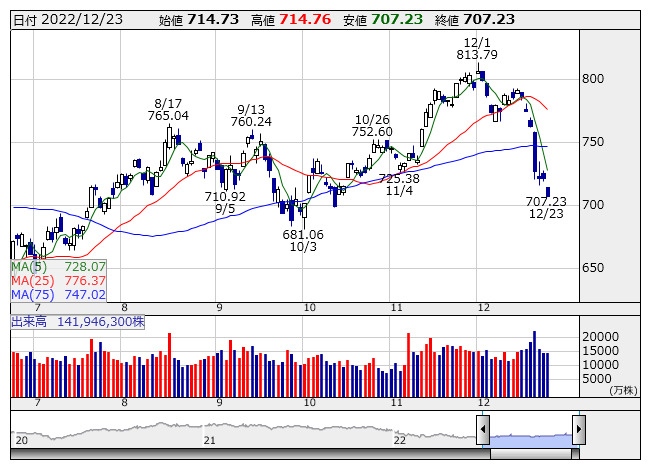 2022年12月26日08時46分 【市況】マザーズ先物:26日寄り付き=1ポイント安、702ポイント マザーズ指数 <日足> 「株探」多機能チャートより 26日8時45分、東証マザーズ指数先物期近2023年3月限は前週末清算値比1ポイント安の702ポイントで寄り付いた。前週末の東証マザーズ指数の現物終値707.23ポイントに対しては5.23ポイント安。夜間取引の終値702ポイントに対しては変わらずとなっている。 株探ニュース