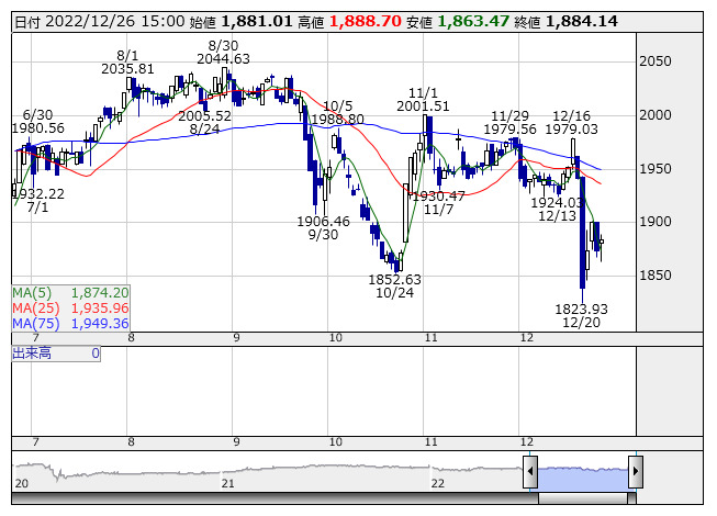 2022年12月26日15時17分 【市況】東証REIT指数先物:26日清算値=6ポイント高、1857ポイント REIT指数 <日足> 「株探」多機能チャートより 26日15時15分、東証REIT指数先物期近2023年3月限は前週末清算値比6ポイント高の1857ポイントで取引を終えた。出来高は349枚だった。この日の東証REIT指数の現物終値1884.14ポイントに対しては27.14ポイント安。 株探ニュース