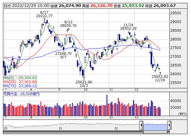 日経平均 <日足> 売買代金 「株探」多機能チャートより個別ではiFreeETF NASDAQ100 ダブルインバース <2870> が新高値。iFreeETF NASDAQ100(為替ヘッジあり) <2841> 、NEXTNASDAQ-100 <1545> 、グローバルX 米国優先証券 ETF <2866> 、MAXISナスダック100上場投信(為替ヘッジあり) <2632> 、グローバルX NASDAQ100・カバード・コール <2865> など12銘柄が新安値をつけた。