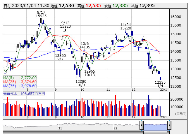 日経レバ <日足> 売買代金 「株探」多機能チャートより売買代金