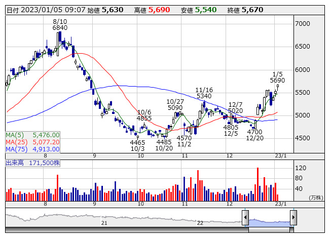 4日に発表した「12月銀座本店売上高は29.9%増」が買い材料。