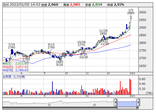 一方、SDSホールディングス<1711>、第一屋製パン<2215>、ユニカフェ<2597>、片倉工業<3001>、クリヤマホールディングス<3355>など35銘柄が昨年来安値を更新。八千代工業<7298>、ゲームカード・ジョイコホールディングス<6249>、モリテック スチール<5986>、マミヤ・オーピー<7991>、光陽社<7946>は値下がり率上位に売られた。