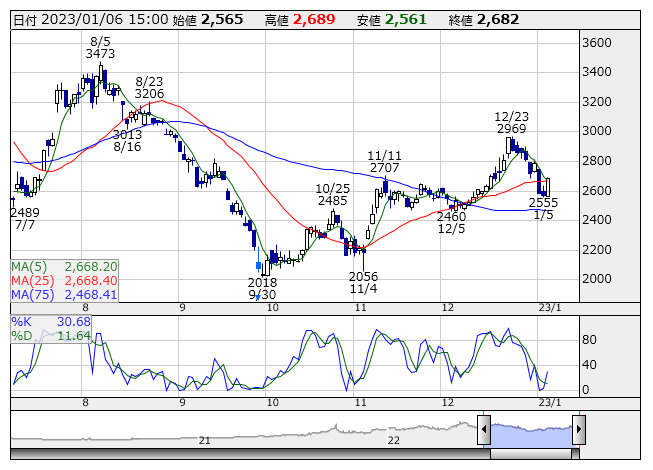 <6235> オプトラン 2396 +156 ( +7.0%) 2388.4